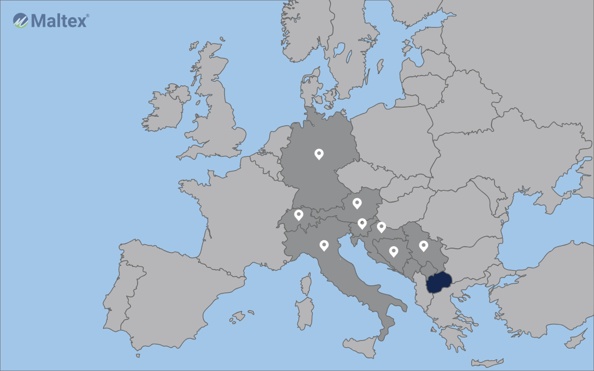Poslujemo u Sjevernoj Makedoniji, Srbiji, Hrvatskoj, Bosni i Hercegovini, Crnoj Gori, Sloveniji, Italiji, Njemačkoj, Austriji i Švicarskoj. Istražite našu sveobuhvatnu ponudu i otkrijte vrhunsku uslugu koja danas definira Maltex Global.